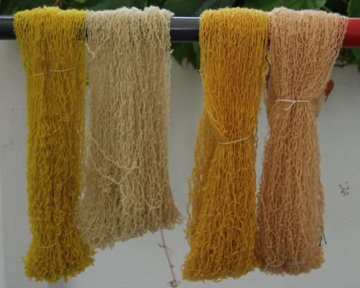 Die Saison geht weiter…. Gelber Sonnenhut hat sich im Garten heuer ausgebreitet. Das Färbeergebnis, rechts ohne Beize, links gebeizt mit Kaltbeize AL und oben ein Experiment mit ungebeizter Wolle bei pH 9. Bei den meistenContinue reading