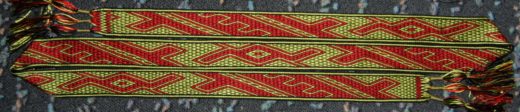 Das ist ein Versuchsband eines doppelseitigen Florgewebes nach Peter Collingwood. Vorlagen dazu sind die Prachtgürtel aus Usbekistan. Kiernan